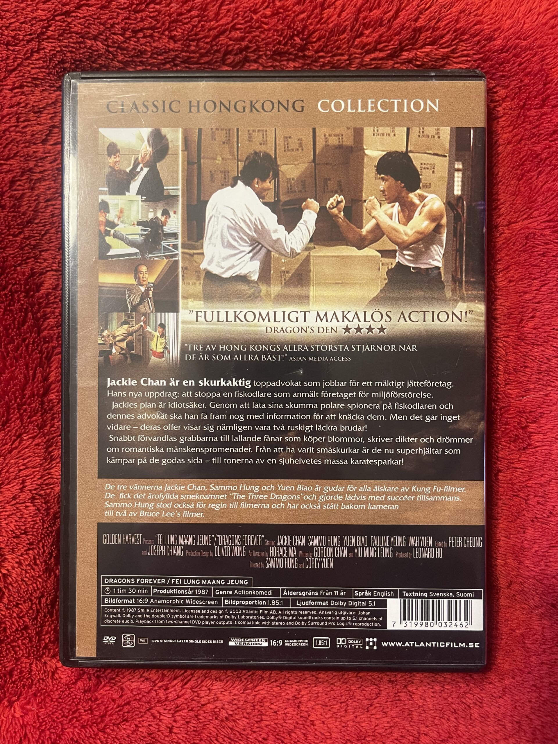 Dragons Forever DVD, Jackie Chan 1987, Sammo Hung film, Yuen Biao, Hong Kong action, kung fu film 80-tal, martial arts DVD, Classic Hong Kong Collection, actionkomedi DVD PAL.