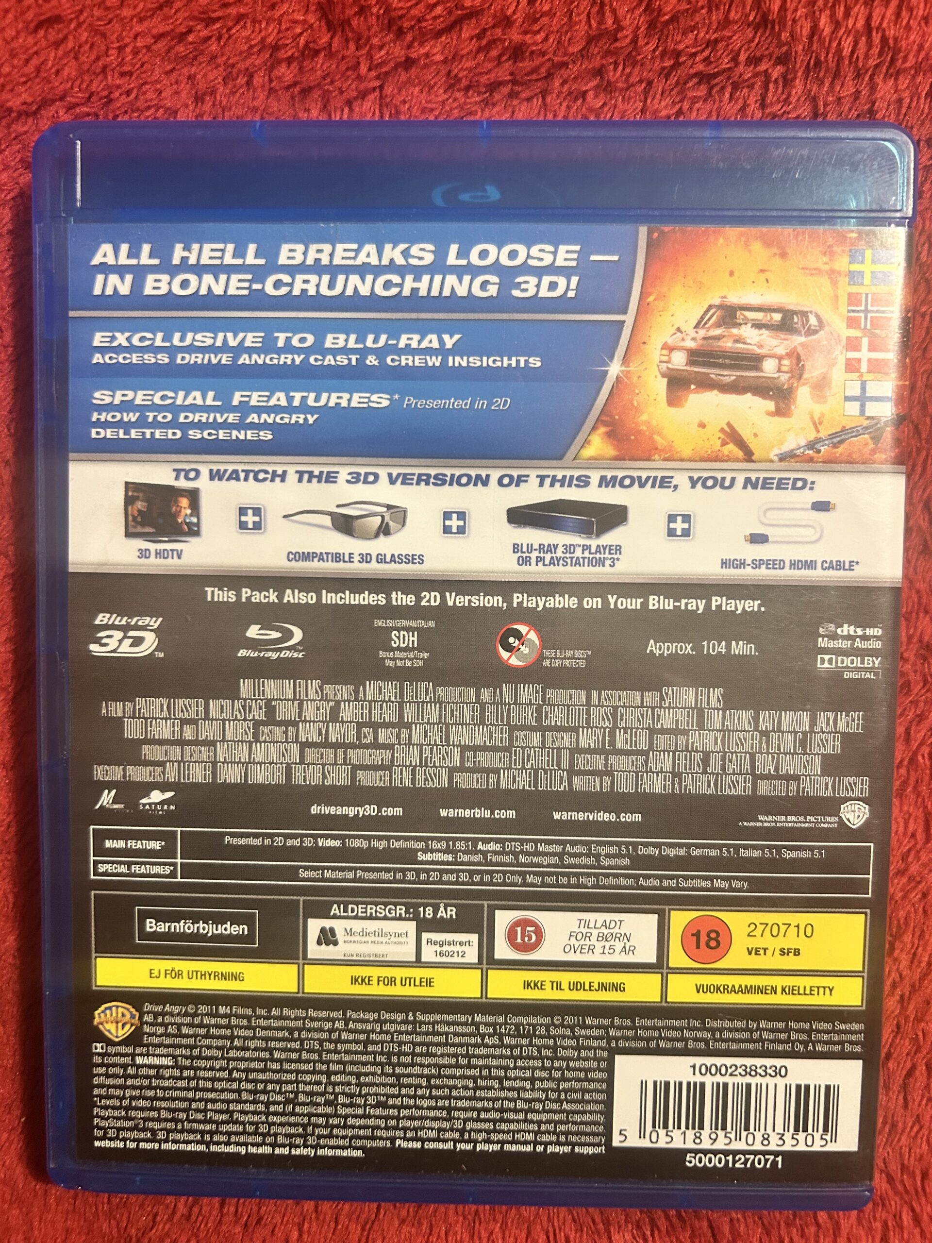 Säljer den adrenalinfyllda actionfilmen Drive Angry 3D med Nicolas Cage i huvudrollen. En brutal, fartfylld road-movie fylld med biljakter, explosioner och kompromisslös action. Denna utgåva innehåller både Blu-ray 3D och vanlig Blu-ray (2D) – perfekt både för 3D-samlaren och för vanlig Blu-ray-spelare.
