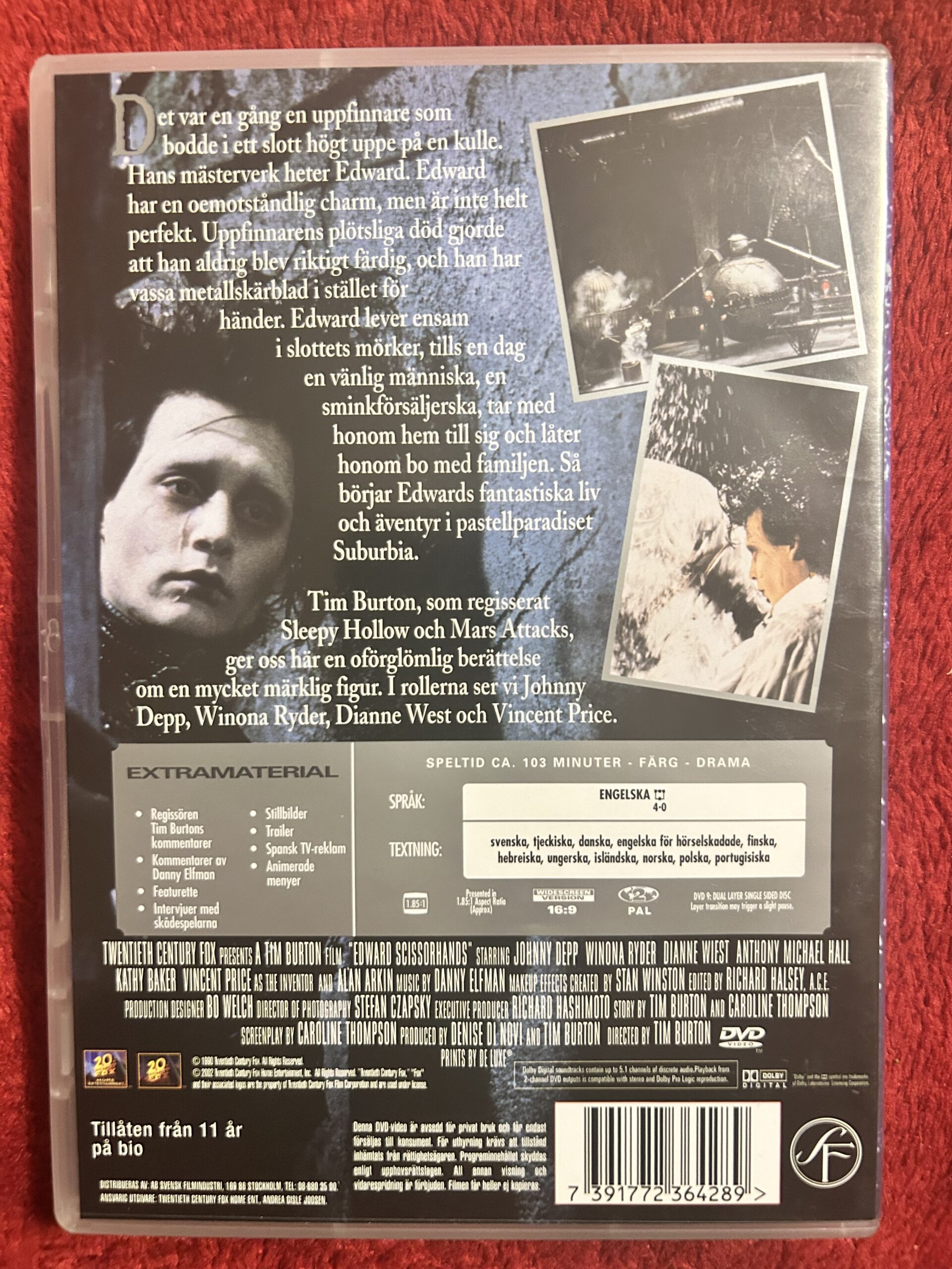 Sökord: Edward Scissorhands DVD, Edward Scissorhands 1990, Tim Burton film, Johnny Depp film, Winona Ryder film, fantasy klassiker DVD, kultfilm 90-tal, Region 2 DVD, romantisk fantasyfilm.