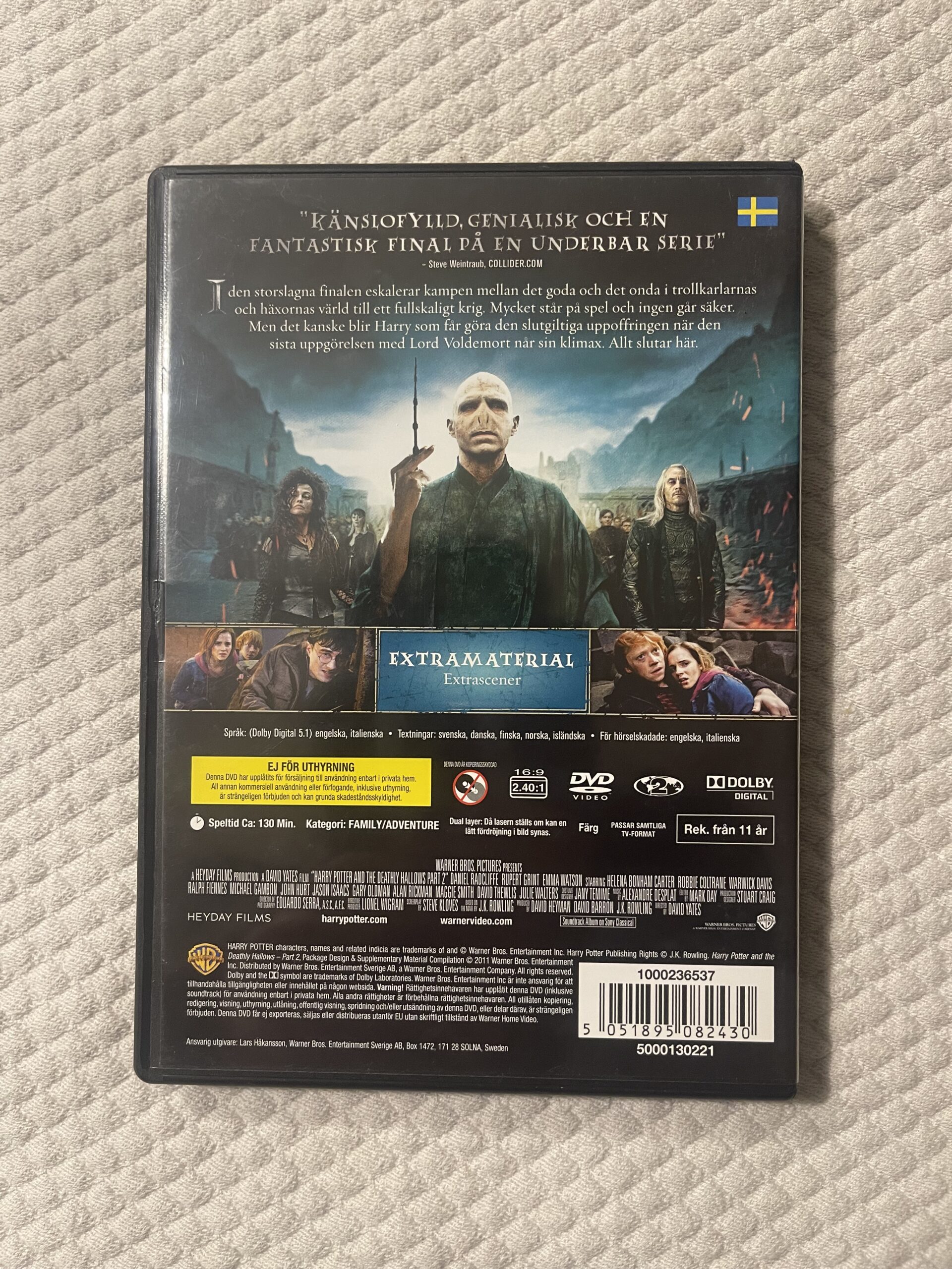 Harry Potter DVD, Dödsrelikerna del 2 DVD, Deathly Hallows Part 2, fantasy film, Hogwarts, Voldemort, magi film, svensk text DVD, äventyr, Harry Potter samling, finalen