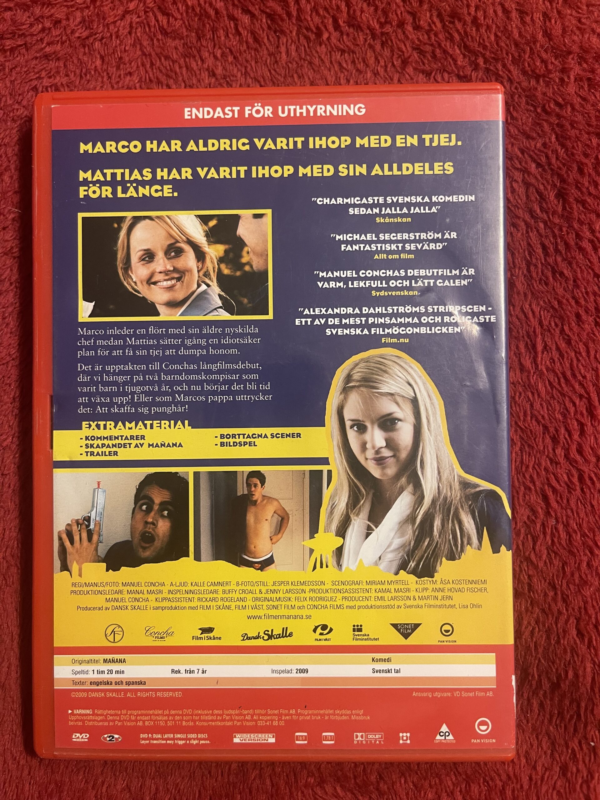 Mañana DVD, Manana 2009 film, svensk komedi DVD, Manuel Concha film, svensk romantisk komedi, svensk humorfilm DVD, nordisk komedi region 2, svensk film DVD.