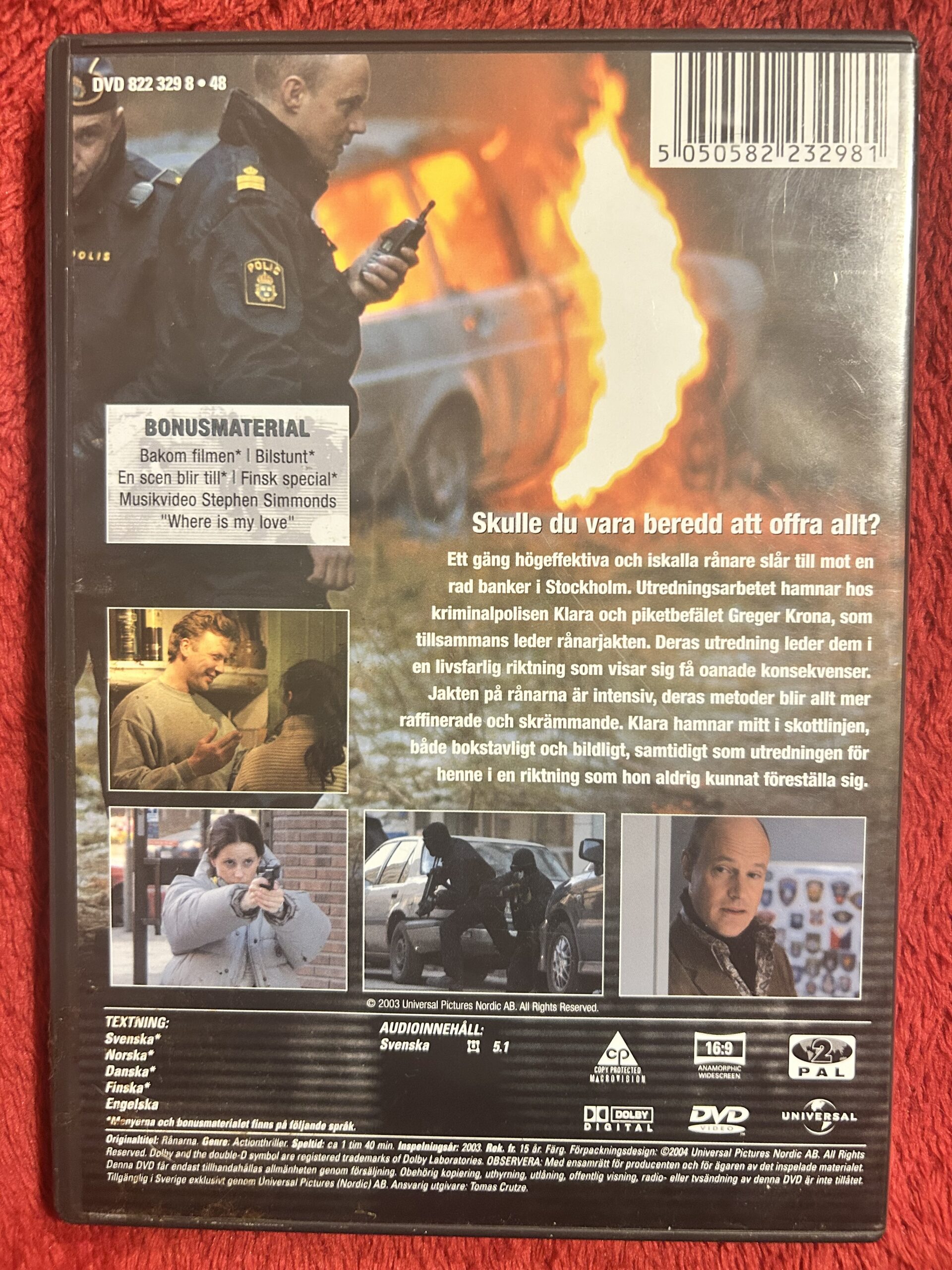 Sökord: Rånarna DVD, Mikael Persbrandt film, svensk actionfilm, svensk kriminalfilm DVD, Sofia Helin film, svensk thriller, svensk polisfilm, Region 2 PAL DVD.