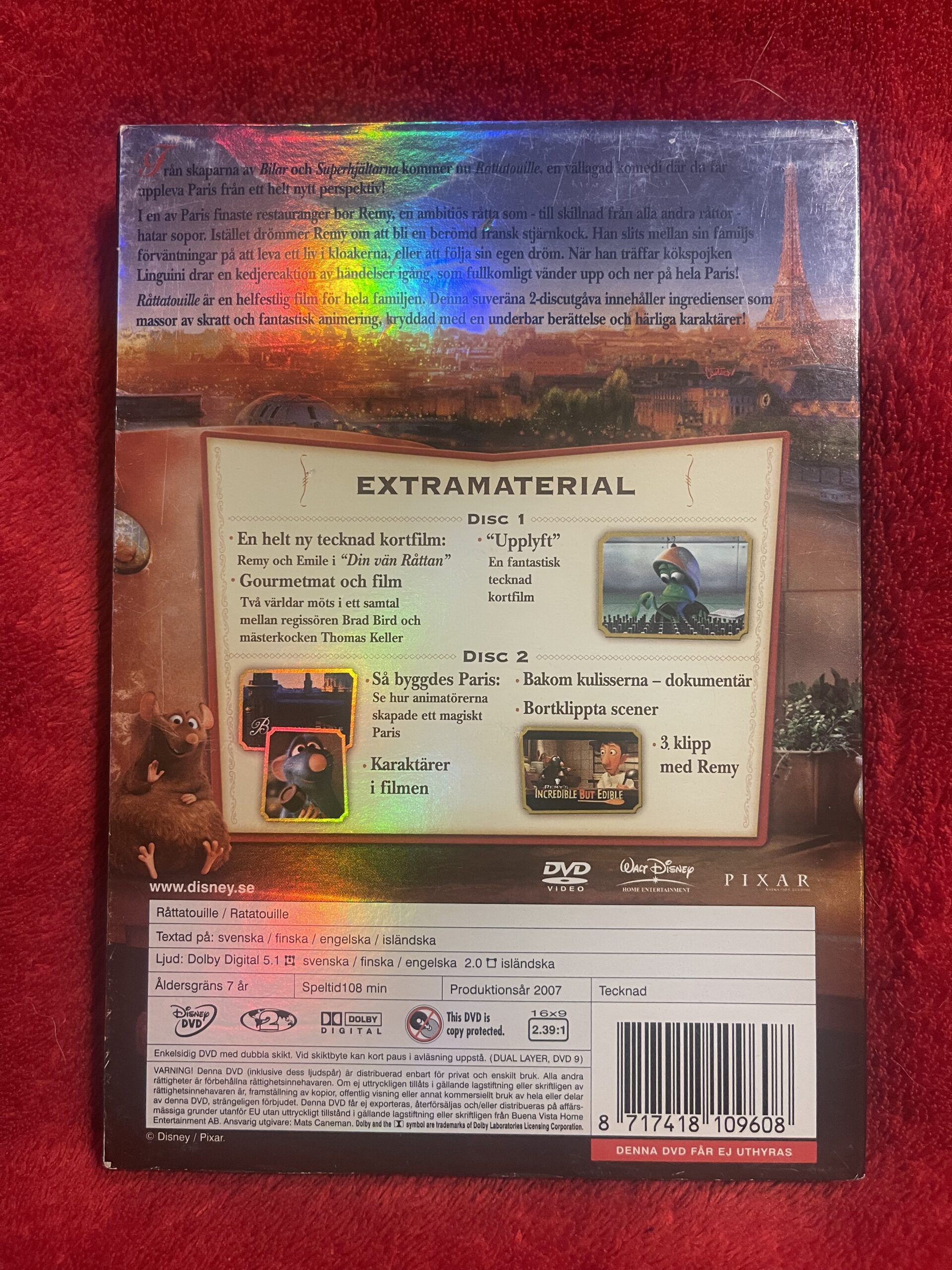 Råttatouille DVD svensk tal, Ratatouille DVD Region 2, Disney Pixar film DVD, barnfilm Disney, familjefilm animerad, Pixar klassiker DVD, svensk dubbning Pixar, Disney samlarutgåva, 2-disc specialutgåva