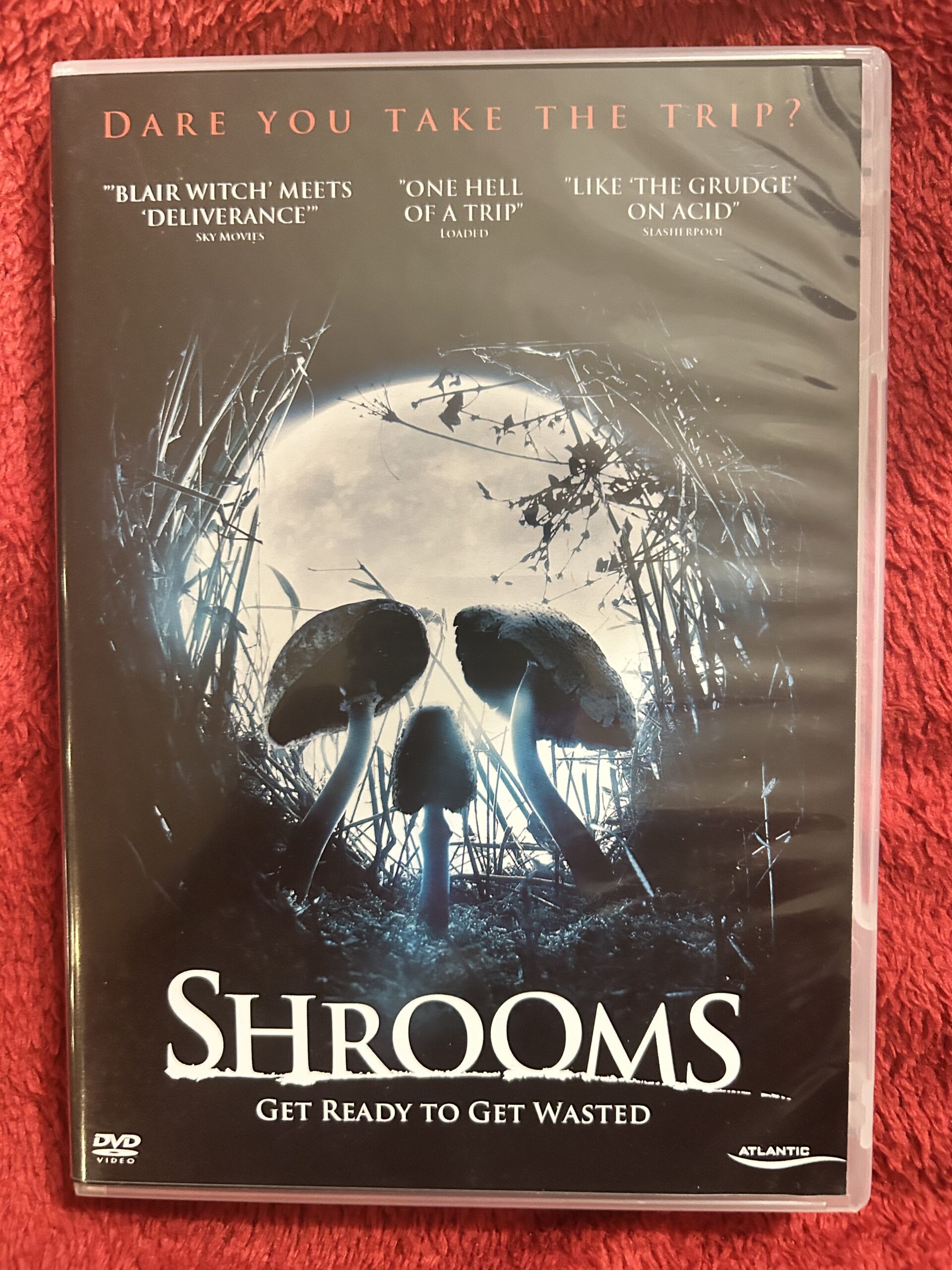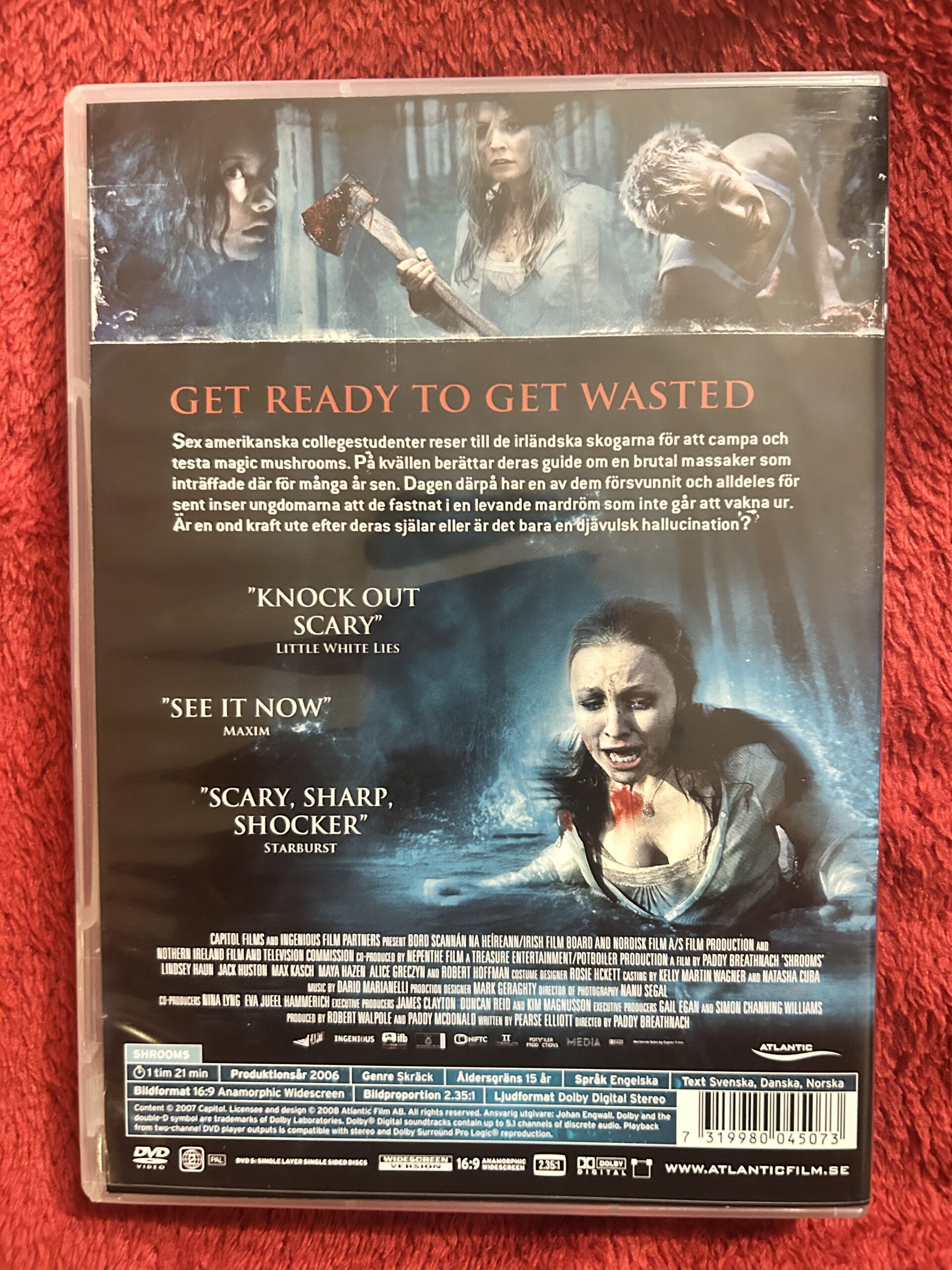 Shrooms DVD, skräckfilm 2006, psykologisk horror, irländsk skräckfilm, hallucination skräck, Blair Witch liknande film, skog skräckfilm, thriller DVD, Atlantic Film DVD, kult skräckfilm