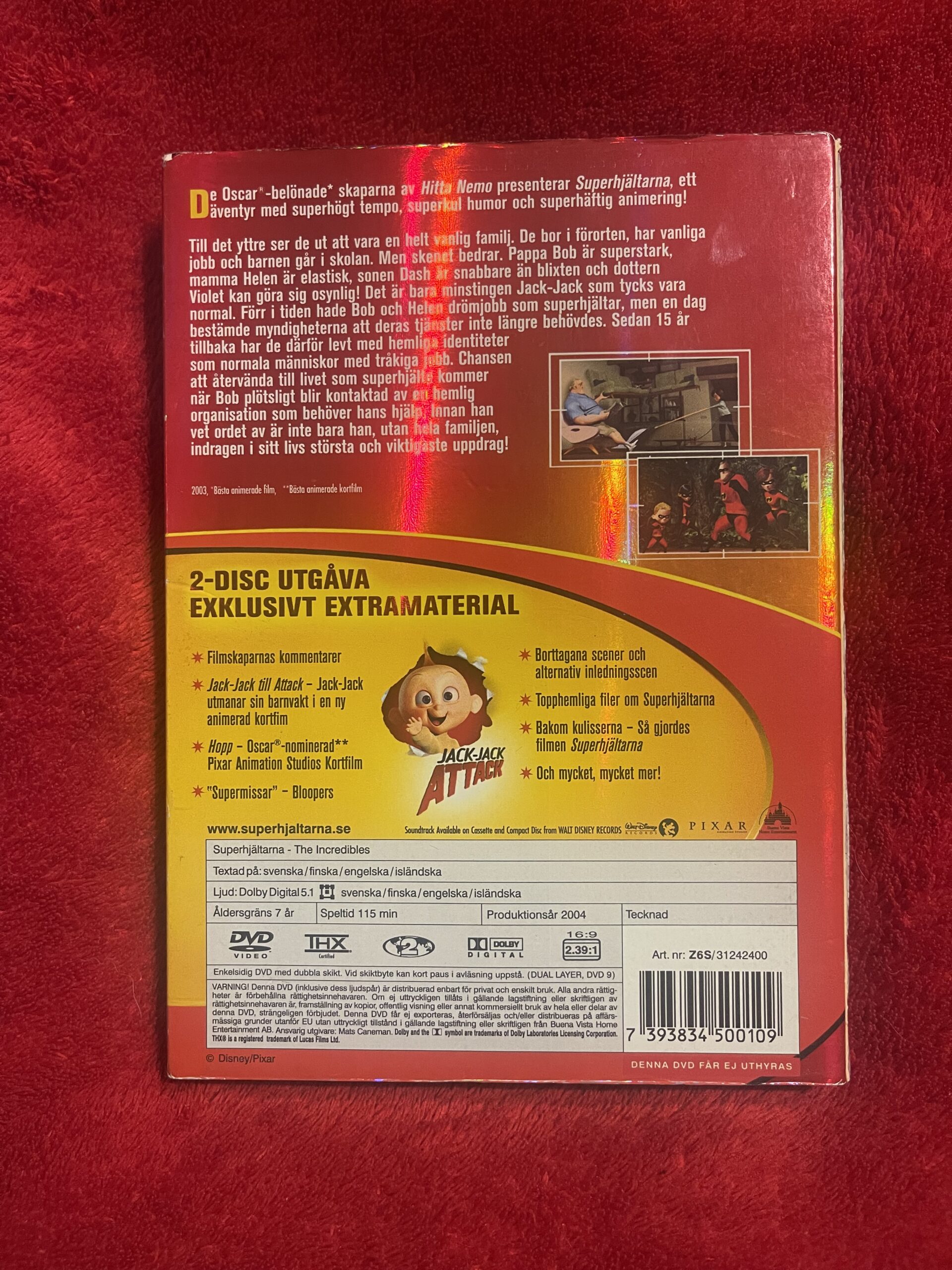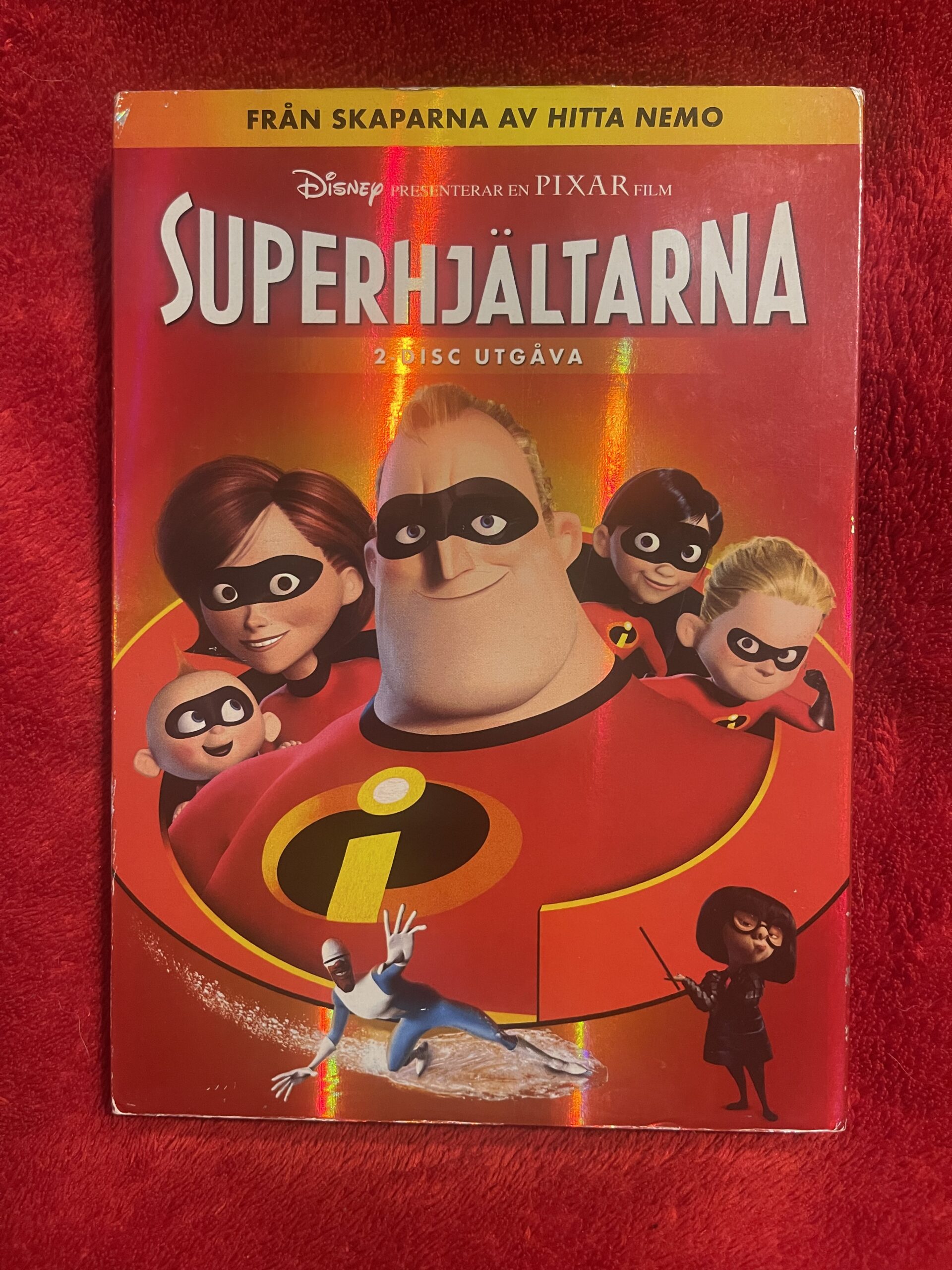 Superhjältarna DVD svensk tal, The Incredibles DVD Region 2, Pixar film DVD, Disney Pixar klassiker, barnfilm DVD, familjefilm action animerad, Pixar samlarutgåva, 2-disc specialutgåva, svensk dubbning Disney Pixar