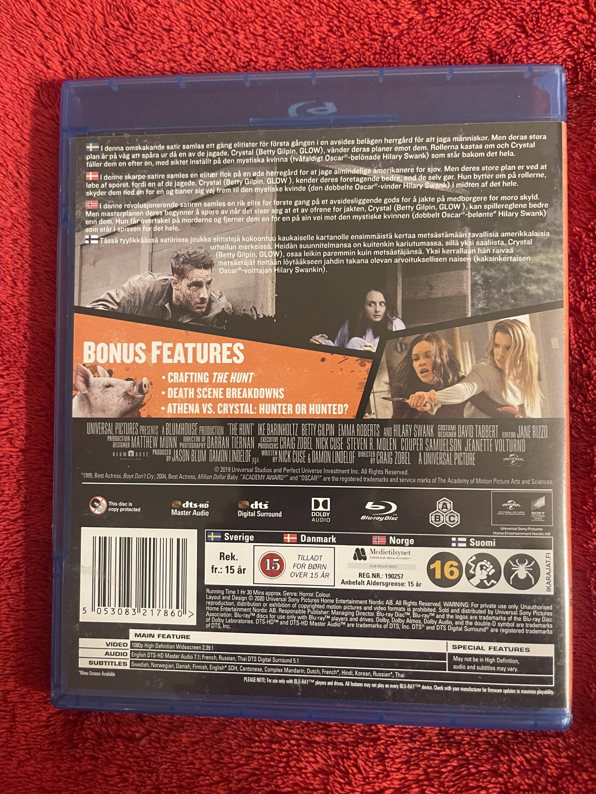 The Hunt Blu-ray, The Hunt 2020 Blu-ray, Blumhouse film, action thriller Blu-ray, Betty Gilpin film, Hilary Swank thriller, kultfilm Blu-ray, thriller Blu-ray samlarfilm.