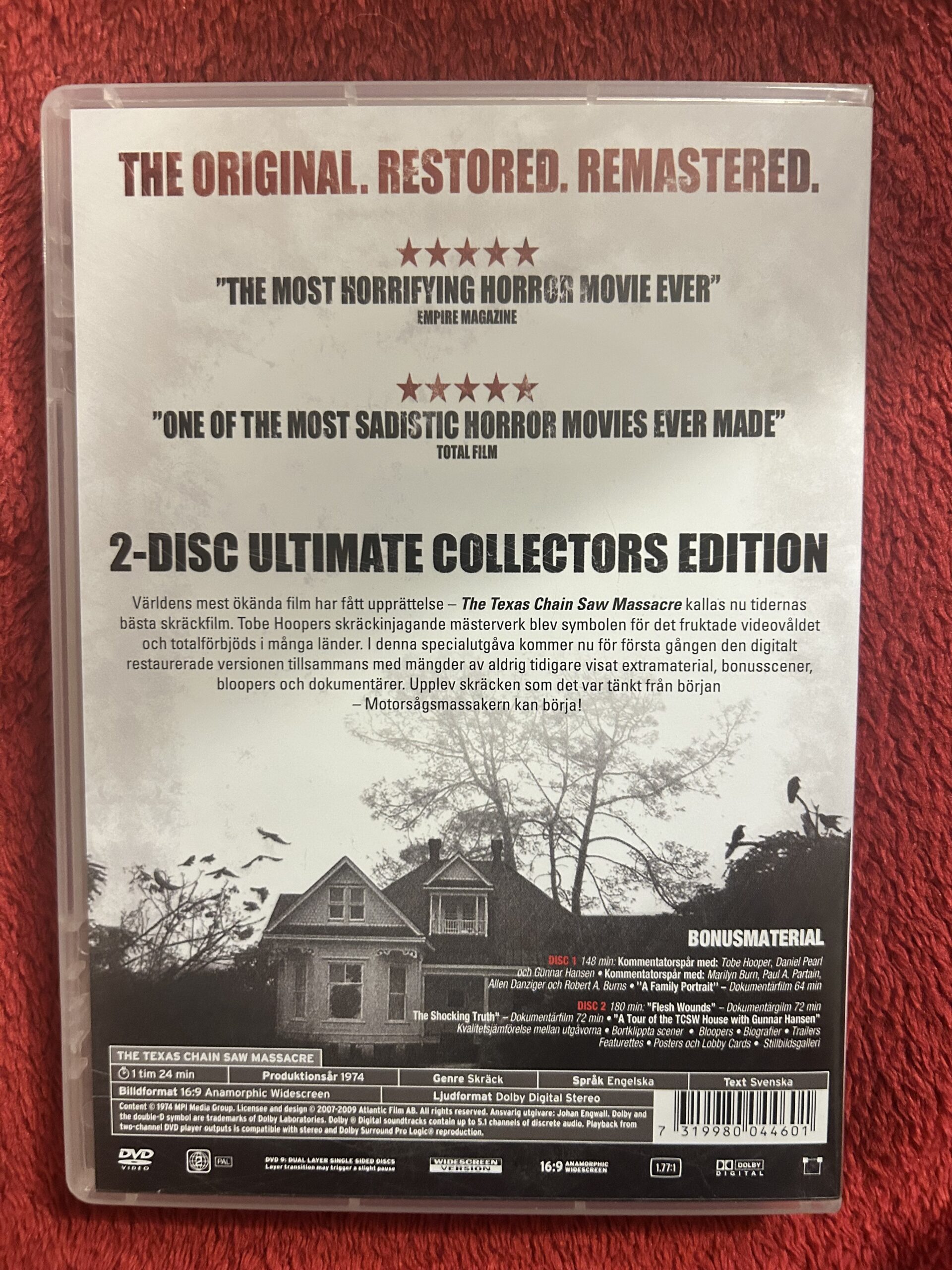 Texas Chain Saw Massacre 1974 DVD, motorsågsmassakern film, Tobe Hooper skräckfilm, horror klassiker DVD, collectors edition skräck, Leatherface film, kultfilm skräck DVD, retro horror film, 2 disc special edition, remastered horror DVD