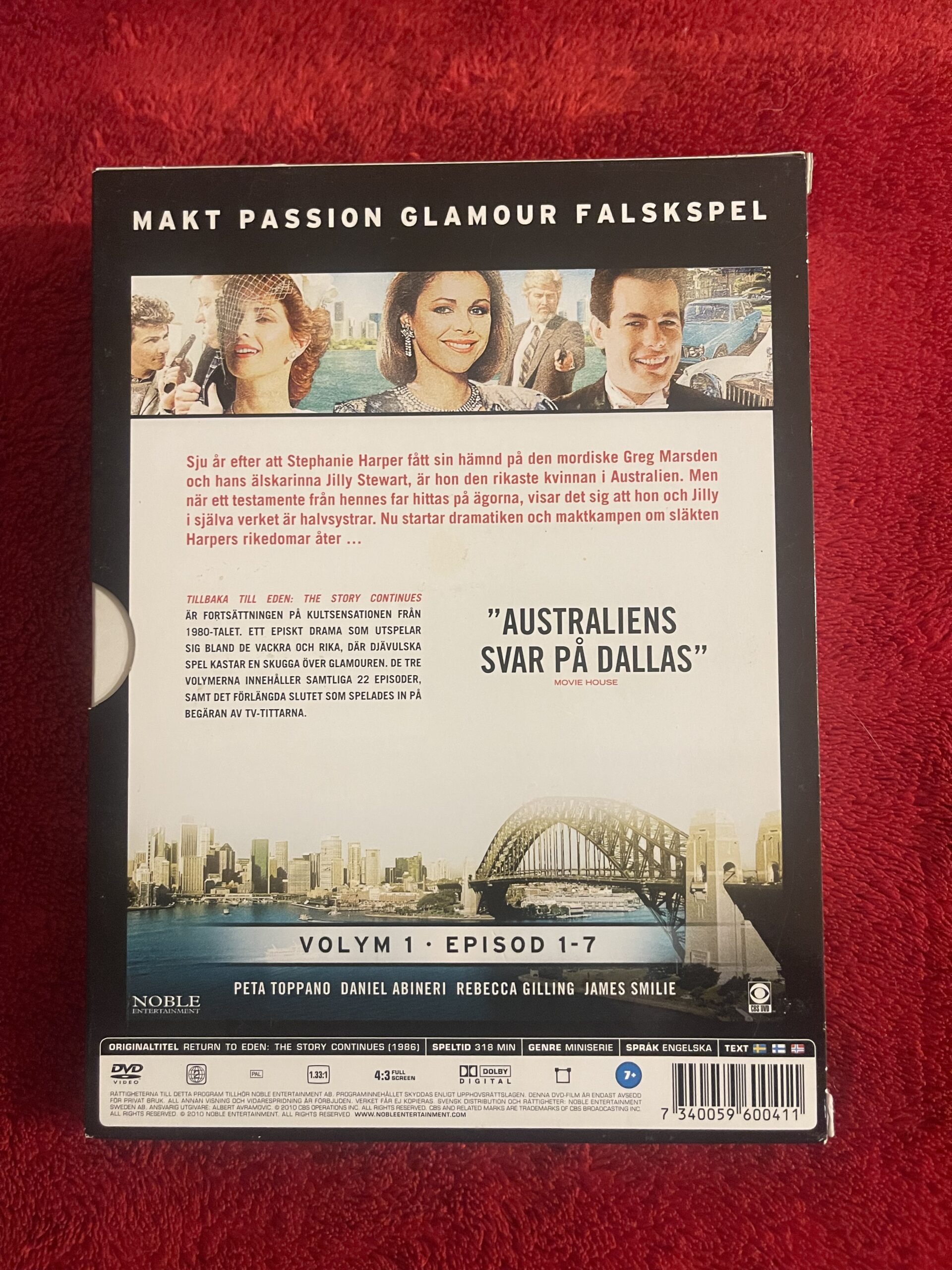 Tillbaka till Eden DVD, Return to Eden 1986, australiensisk dramaserie, 80-tals serie DVD, klassisk miniserie, Stephanie Harper, drama box DVD, såpa 80-tal, Volym 1 episod 1-7, Noble Entertainment DVD.
